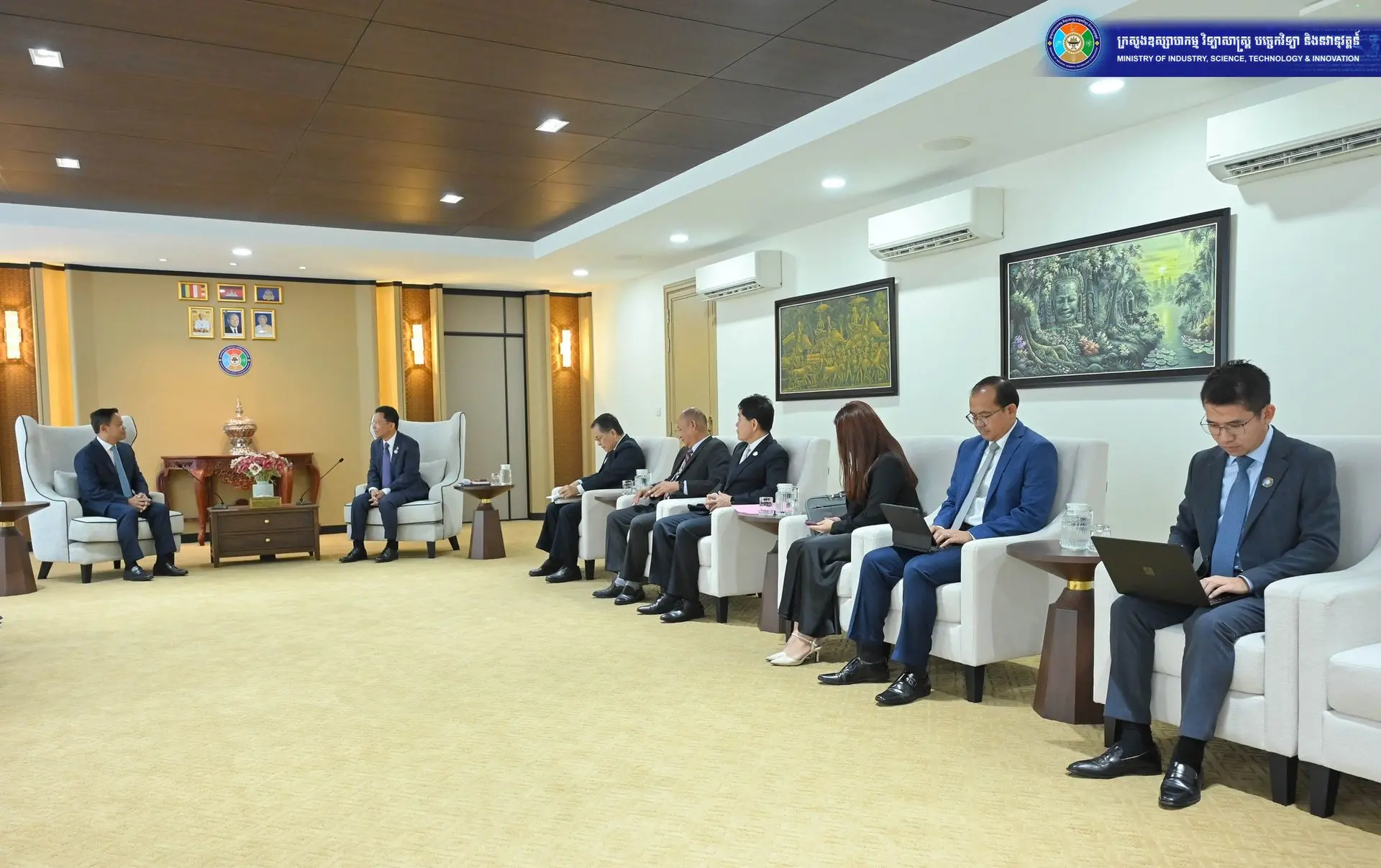 February 13, 2026 – RMA (Cambodia) Plc. paid a courtesy visit to His Excellency Hem Vanndy, Minister of Industry, Science, Technology and Innovation, to discuss the overall development of Cambodia’s automotive industry, including the expansion of the Ford assembly plant, the promotion of local production, and the strengthening of vehicle safety standards.